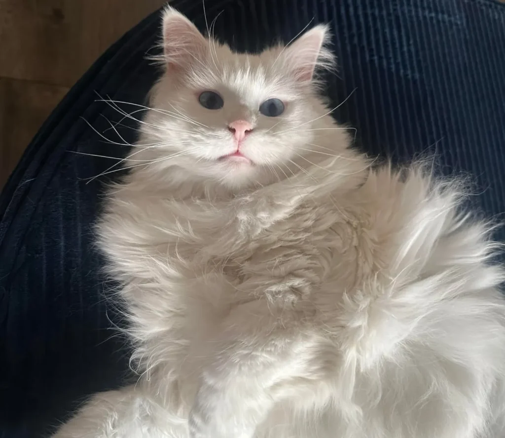 As the expedition moved indoors to a wooden cabin, the Cloud Cat’s instincts kicked in. He knew that a king must always look down upon his kingdom. He scrambled up the warm, wooden beams to the loft. Peering over the edge with wide, sapphire eyes, he dangled his paws casually over the timber. From this vantage point, he could ensure that no unauthorized squirrels entered the premises. The inspection was a success; the lodgings were deemed acceptable.